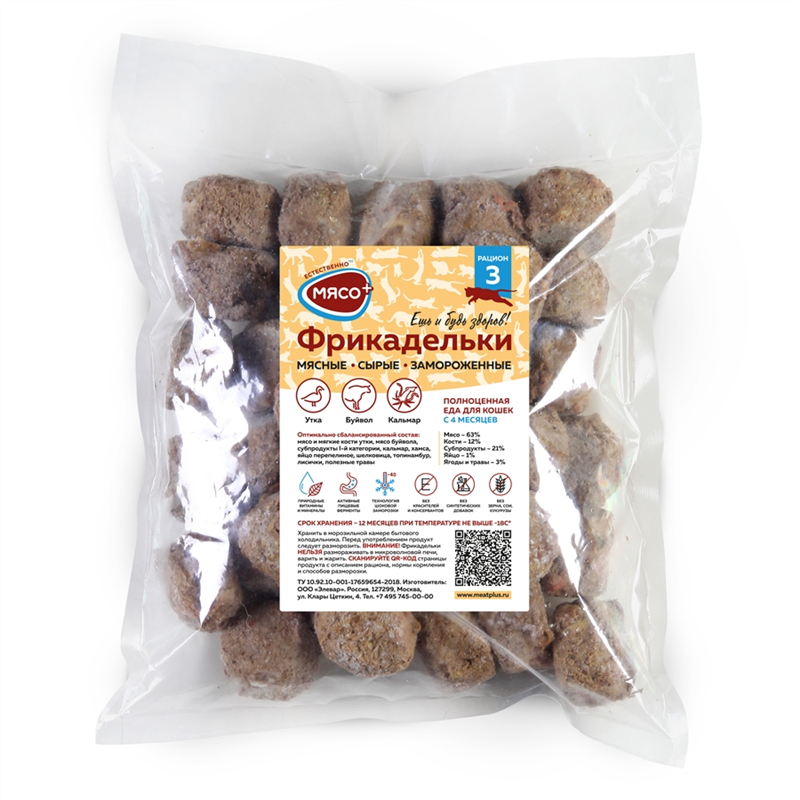 Рацион 3. Фрикадельки для активных кошек (1 кг). Натуральный корм